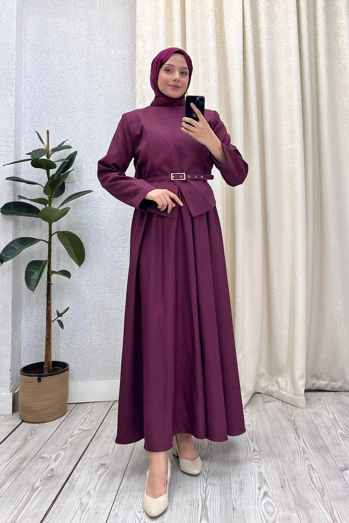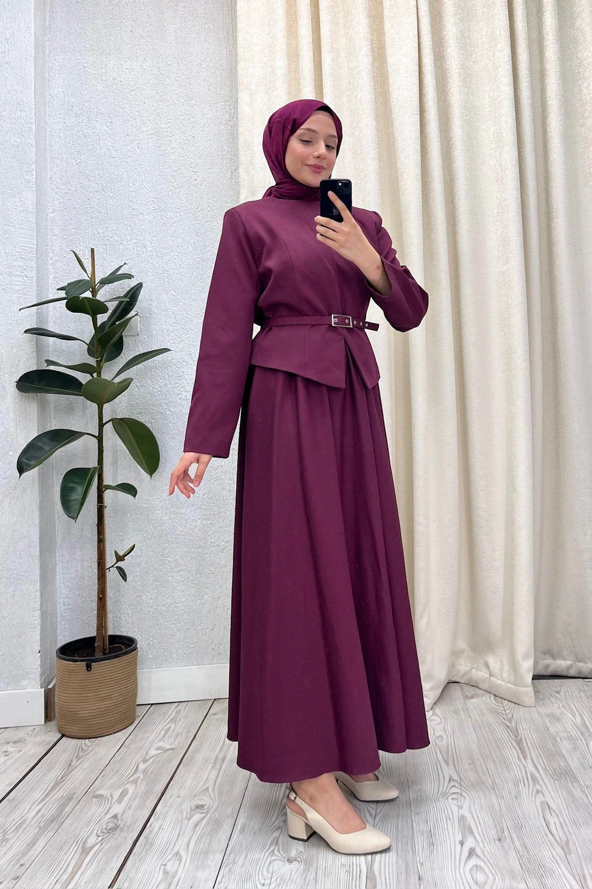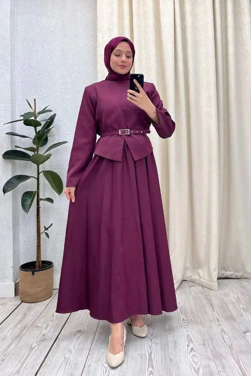 طقم لِيّارا هو خيارك المحتشم والأنيق في نفس الوقت، بقصّة طويلة وواسعة تغطي الجسم مع حزام على الخصر يبرز القوام برقيّ.